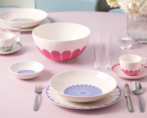 Inspired by the charm of blooming petals, the Fleur collection captures the art of effortless beauty. Each piece radiates with soft, modern hues and petal-shaped motifs, adding a refreshing, playful touch to your table.