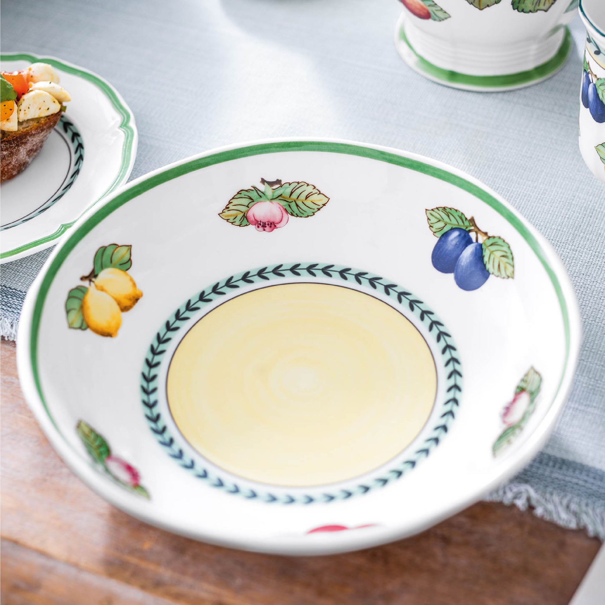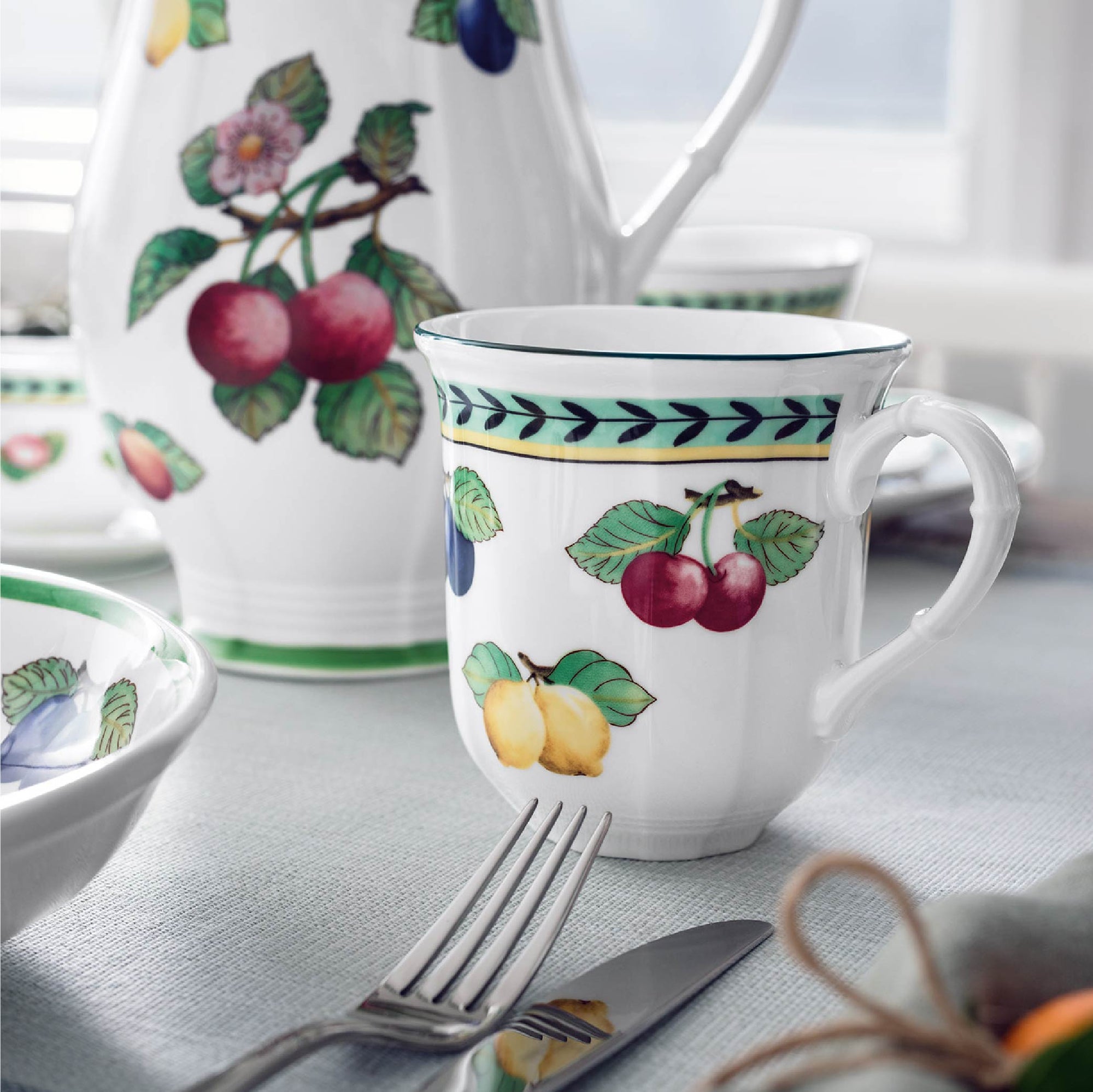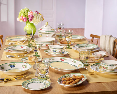 Inspired by the charm of French country gardens, the French Garden collection is one of Villeroy & Boch’s most beloved classics. Its hand-painted fruit motifs, rich green accents, and timeless design bring warmth and cheer to any table. Crafted from premium porcelain, it captures the beauty of orchard harvests and everyday joy.