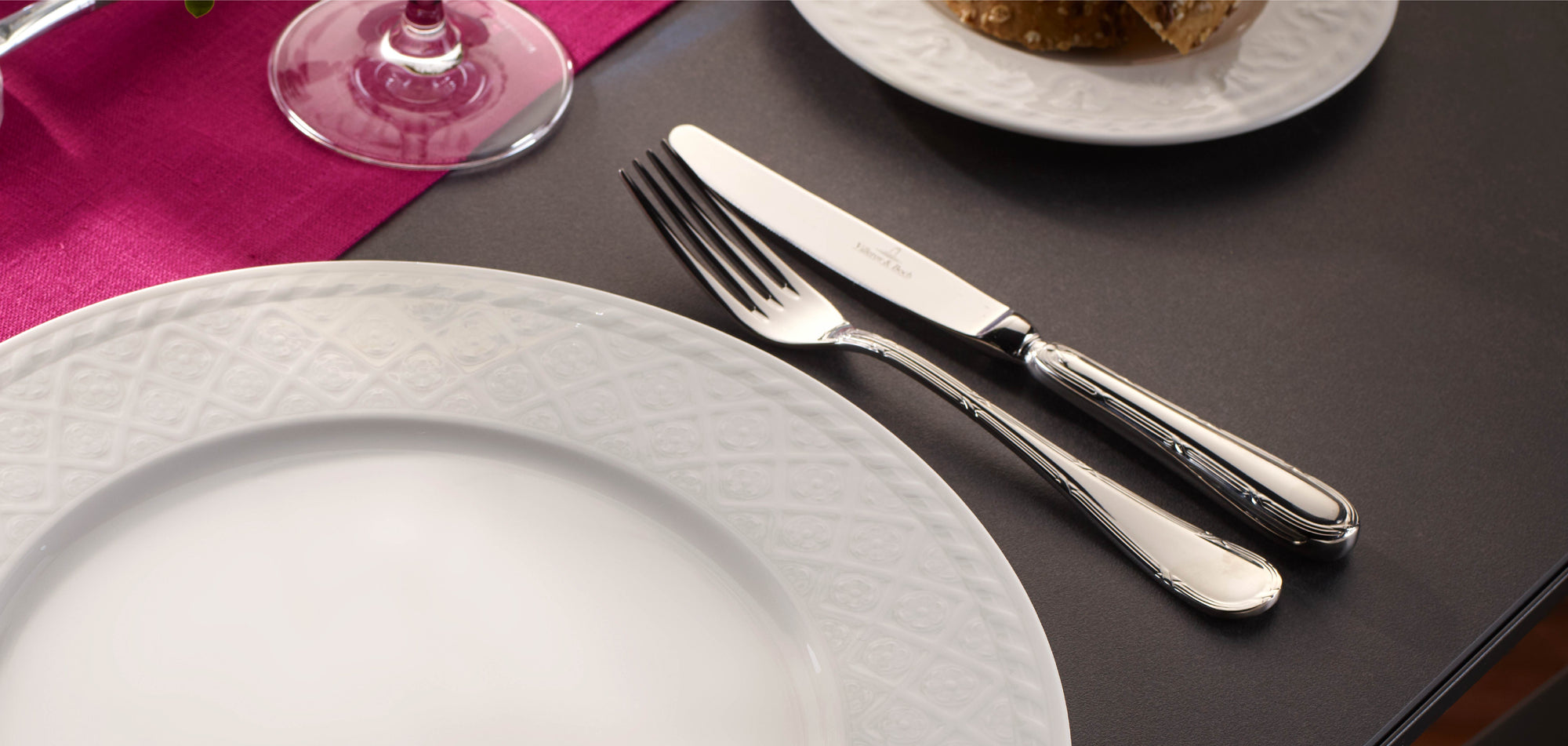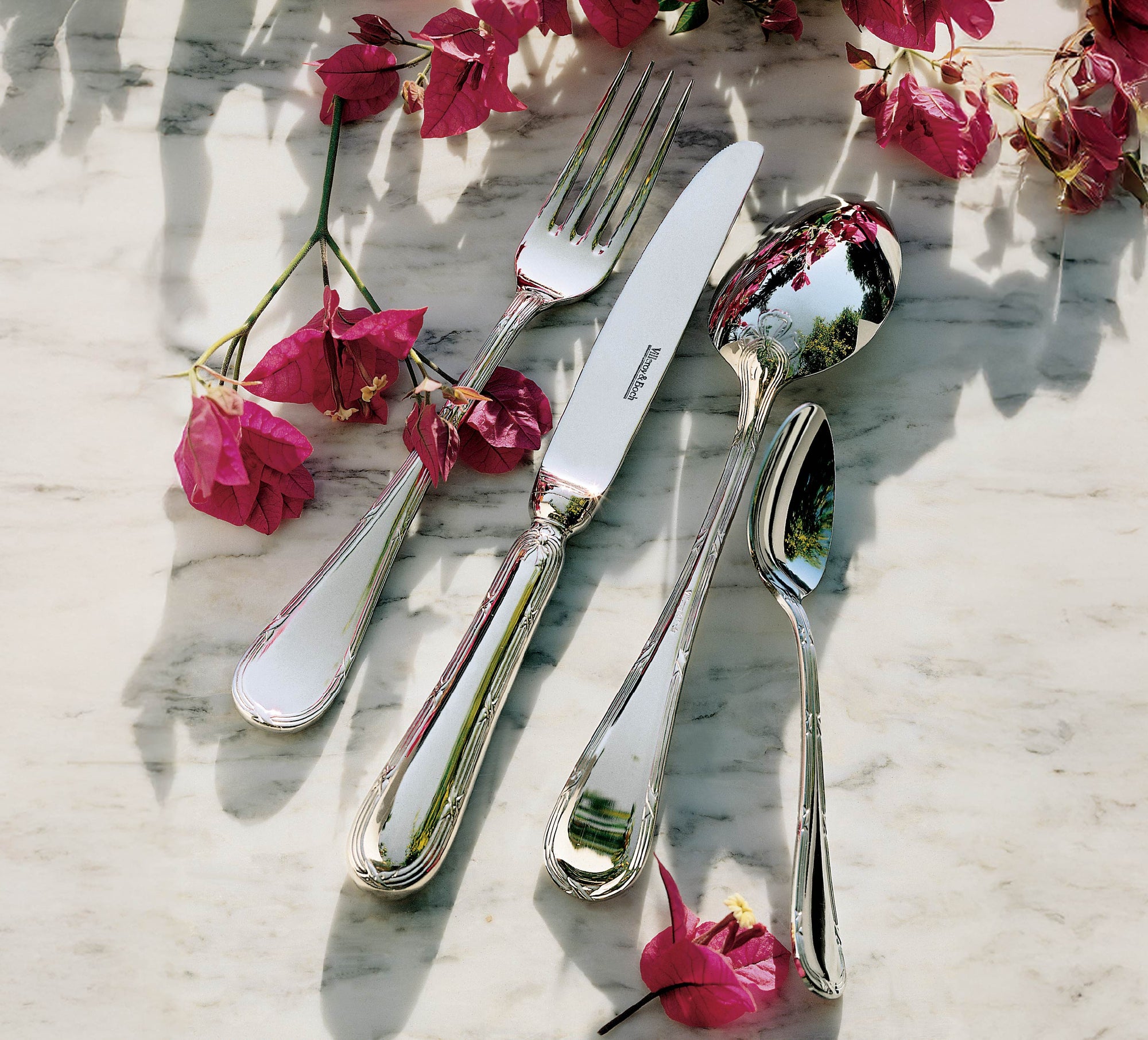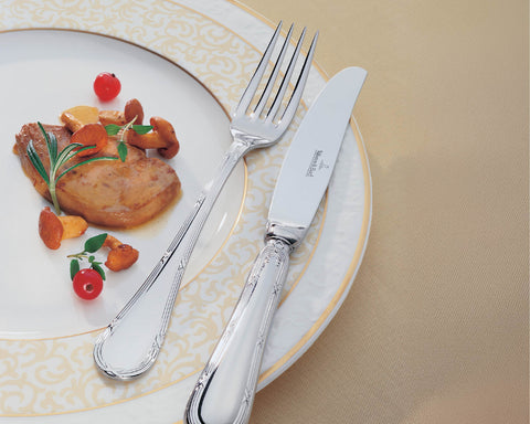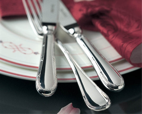 A heritage classic crafted from 18/10 stainless steel, Kreuzband Septfontaines features delicately embossed handles with timeless baroque-inspired detail. Elegant yet durable, it bridges tradition and modern dining.